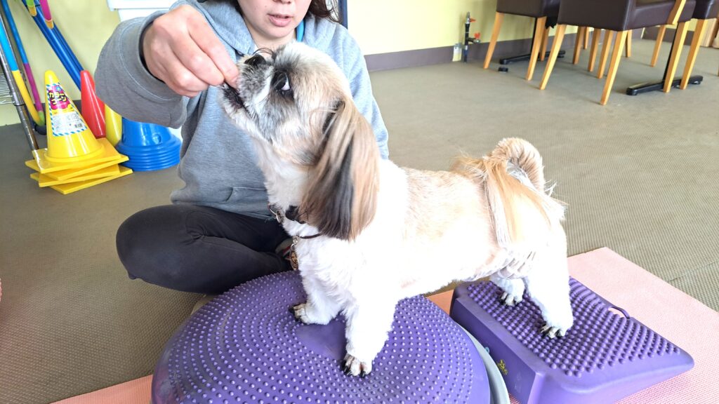 フィットネスは飼い主様が見ている前で実施するため、わんこの頑張る姿をそのまま見守ることができ、動きのクセや体の使い方を一緒に確認できます。ご家庭でのケアにも活かしやすく、安心感にもつながります。