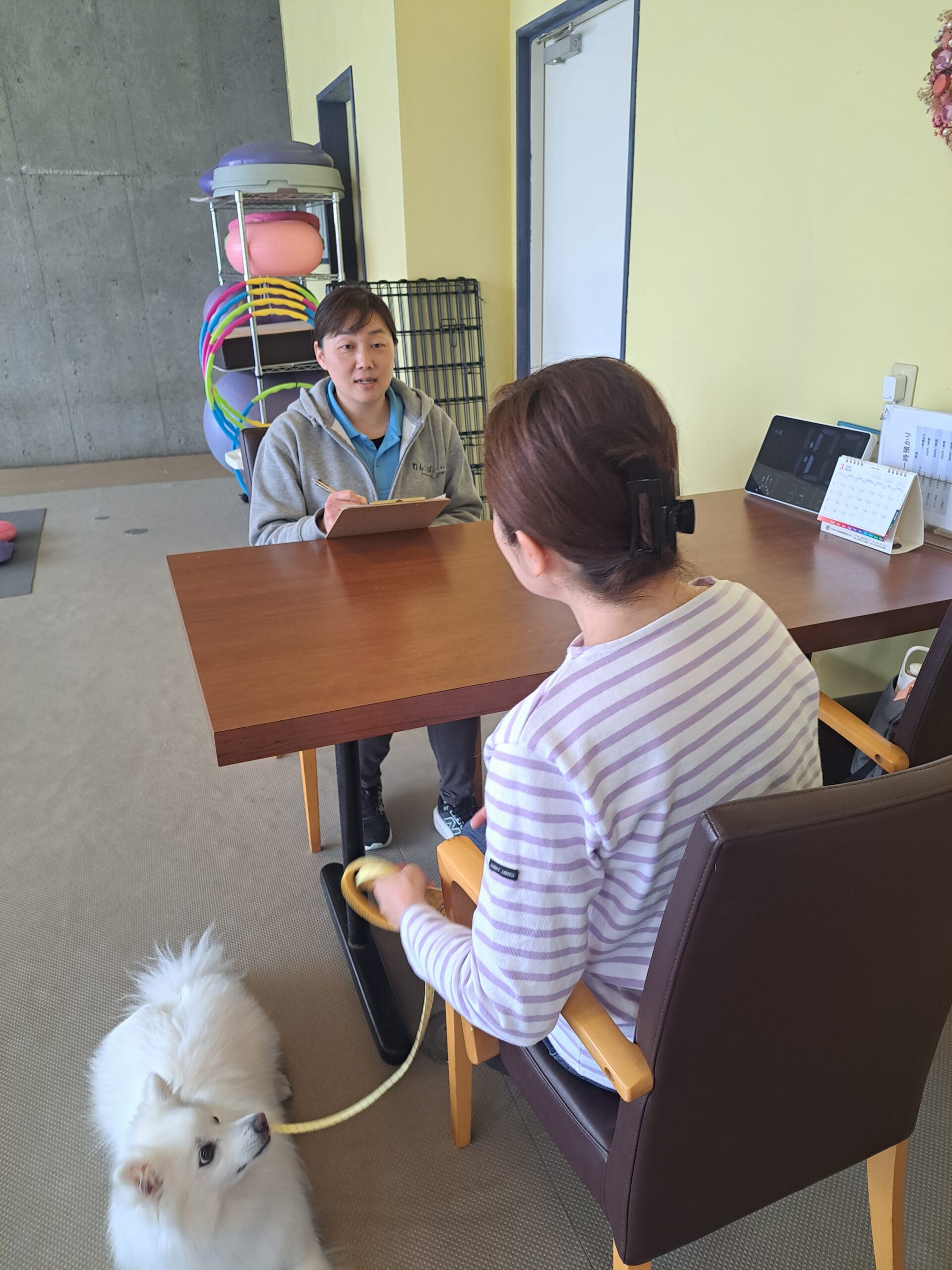 わんこびよりでは、まずカウンセリング(4,400円)を行い、わんこに最適なサポート方法を一緒に考えます。飼い主さまのお話を丁寧に伺い、わんこの性格・反応・体の使い方を実際に見ながら、一番適したコースをご提案いたします。